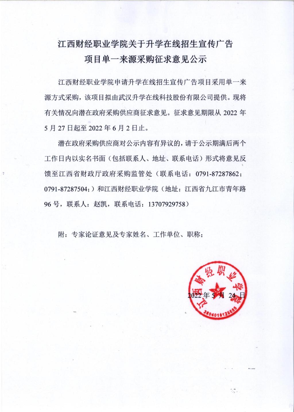beat365平台唯一官网关于招生宣传广告项目单一来源采购征求意见公示