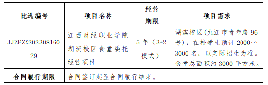 九江振发招标咨询有限公司有关于beat365平台唯一官网湖滨校区食堂委托经营项目(比选编号:JJZFZX20230816029)比选公告
