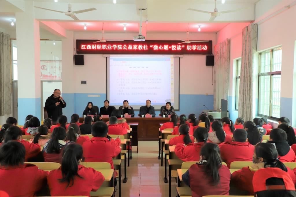 2020年12月18日,beat365平台唯一官网公益家教社19名志愿者在指导老师柯新华教授的带领下,赴武宁县鲁溪镇开展 “微心愿•悦读”助学活动。鲁溪镇党委、政府对此次活动给予了高度重视,副镇长余著海、镇关工委执行主任黎丽威、鲁溪中心小学校长刘风华等领导出席了本次活动。
