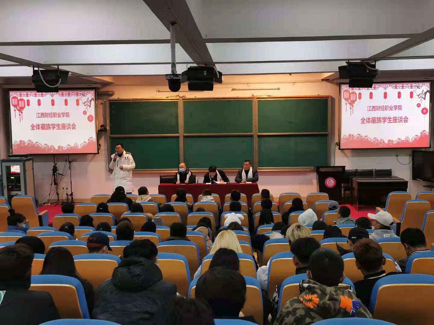 在与学生交流提问环节中,校领导对于藏族学生所关心的专升本、公务员培训、组建藏族文化团等问题上给予了明确的答复,特别是关于藏族学生反映的难以适应学习进度的问题,刘校长给予了高度的重视。校领导在会议上指出,藏族学生后续如有问题和诉求,还可以通过校领导信箱进行沟通与交流,学校将会认真对待与处理。