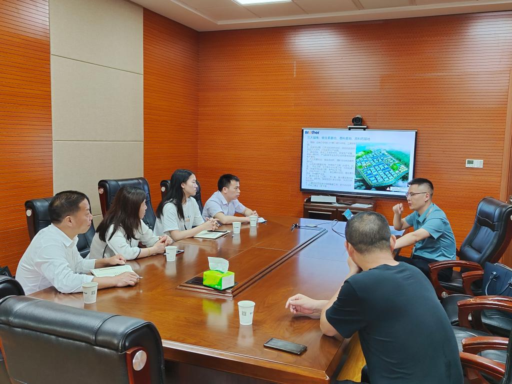 在扬帆新材料有限公司,调研团队与公司负责人就低碳节能、绿色发展进行了交流讨论。