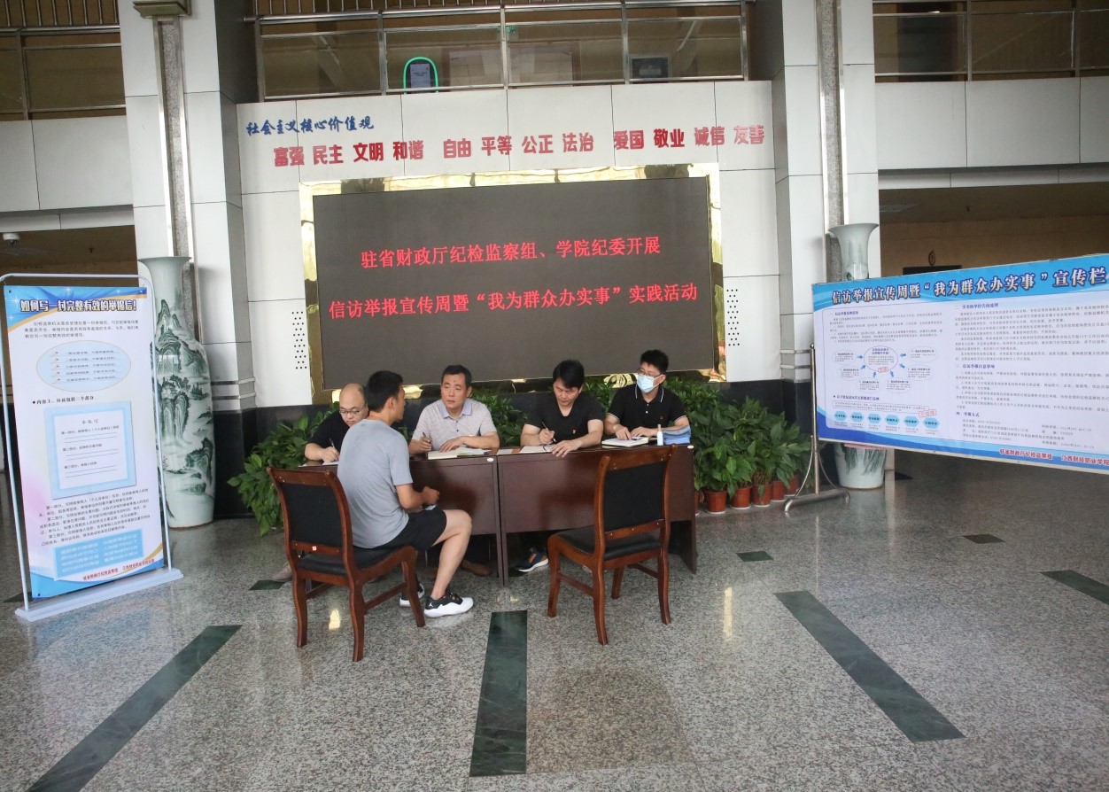 本次活动中,驻厅纪检监察组和学院纪委制作了信访举报专题宣传海报、宣传栏和宣传手册,采取师生群众看得懂、听得进、易理解的方式,向师生群众宣传信访举报受理范围、职责权限、工作程序、举报人权利义务、举报方法等内容,做好宣传教育和引导,调动全院师生参与监督的积极性,同时积极引导广大师生依法、如实、有序、有效举报。活动期间,接待人员现场与师生群众交流,答疑解惑,指引、鼓励师生群众依法依规信访、上访。