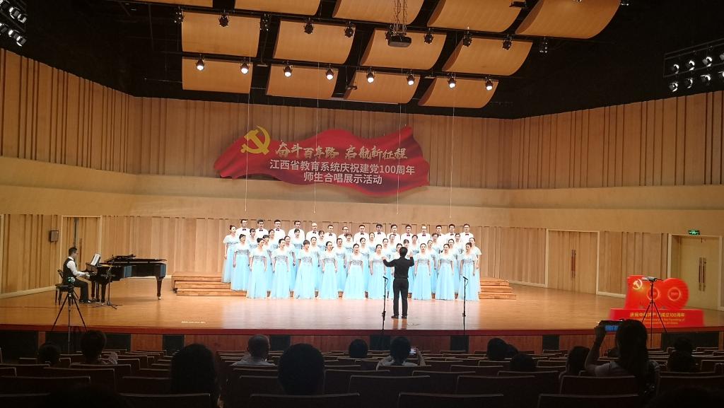 为庆祝建党100周年,落实中共中央办公厅、国务院办公厅《关于全面加强和改进新时代学校美育工作的意见》精神,激发广大师生爱党、爱国、爱家乡的情感,彰显广大师生奋发向上的良好精神风貌,展示学校美育成果,由中共江西省委教育工作委员会、江西省教育厅举办的全省教育系统庆祝建党100周年师生合唱省级现场展示活动6月27日—30日在华东交通大学音乐厅隆重举行。
