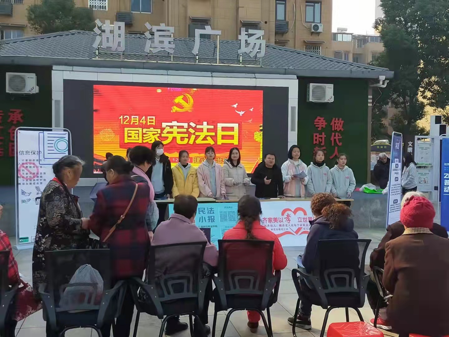 12月4日,第八个国家宪法宣传日,为深入学习党的十九届六中全会精神,贯彻习近平法治思想,beat365平台唯一官网马克思主义学院组织师生深入湖滨小区进行法治宣传活动,提升社区居民的法治意识。