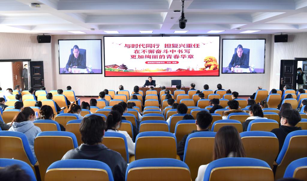 上午十时,朱斌同志紧紧围绕党的十九届六中全会和江西省第十五次党代会精神,以“与时代同行,担复兴重任——在不懈奋斗中书写更加绚丽的青春华章”为题,从“回望历史,百年党史是广大青年孜孜不倦的奋斗史”、“观照现实,为人民谋幸福、为民族谋复兴是共产党人不变的初心使命”、“开创未来,广大青年学生要在内修外练中坚定信仰、积累才干”三个方面,阐述了中国共产党的百年奋斗重大成就和历史经验,充分展示了中国共产党百年征程的波澜壮阔和辉煌成就,并以脱贫攻坚、抗击新冠肺炎疫情和优先发展教育为切入点,深刻阐述了中国共产党领导带领广大有志青年为人民谋幸福、为民族谋复兴的初心使命和以人民为中心的发展思想。他强调,一代人有一代人的长征,一代人有一代人的担当,要从百年党史中找到跨越时空的“自己”,把青春融入党和人民事业发展中,共同汇聚起中华民族加速迈向伟大复兴的蓬勃力量。