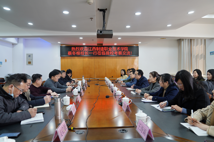3月2日,江西制造职业技术学院校长蔡冬根一行11人来beat365考察交流。校长刘彪文、常务副校长何先应、党委委员邱家明热情接待了蔡冬根校长一行,学校相关职能部门负责人参加交流座谈会。