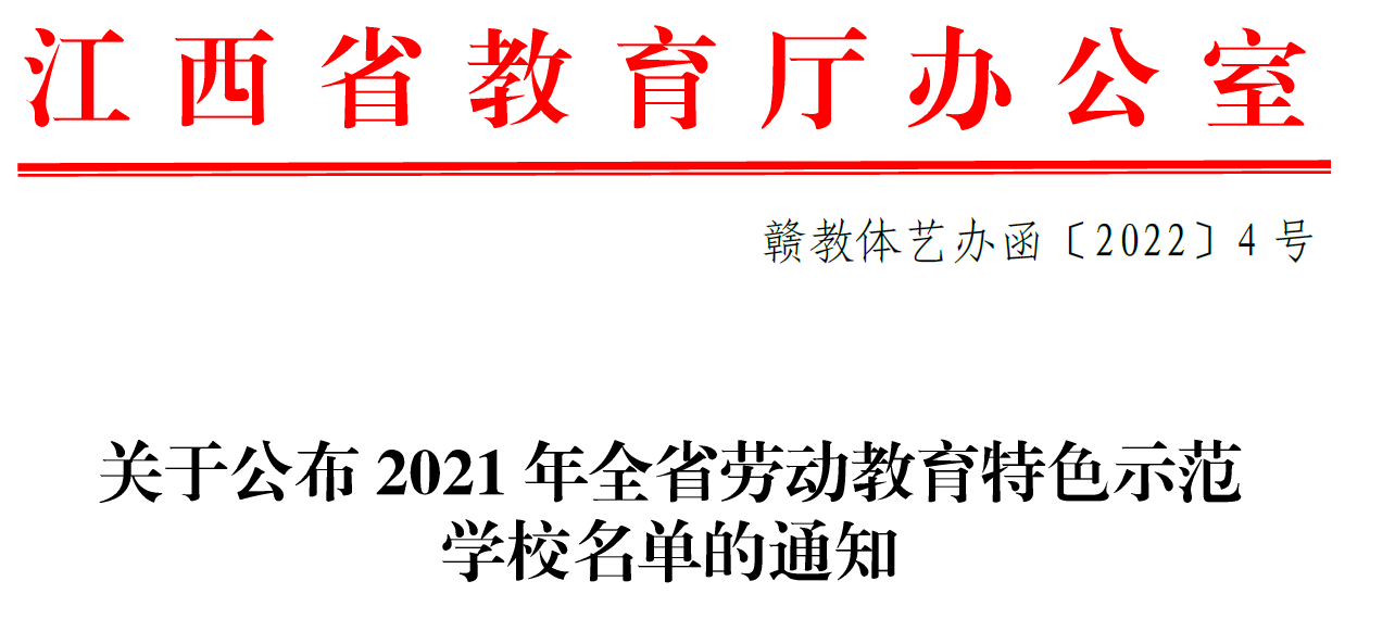 日前,省教育厅公布了第一批省级劳动教育特色示范学校名单,全省共有37所高校、156所中小学校(幼儿园)上榜。beat365获批为“江西省劳动教育特色示范学校”。