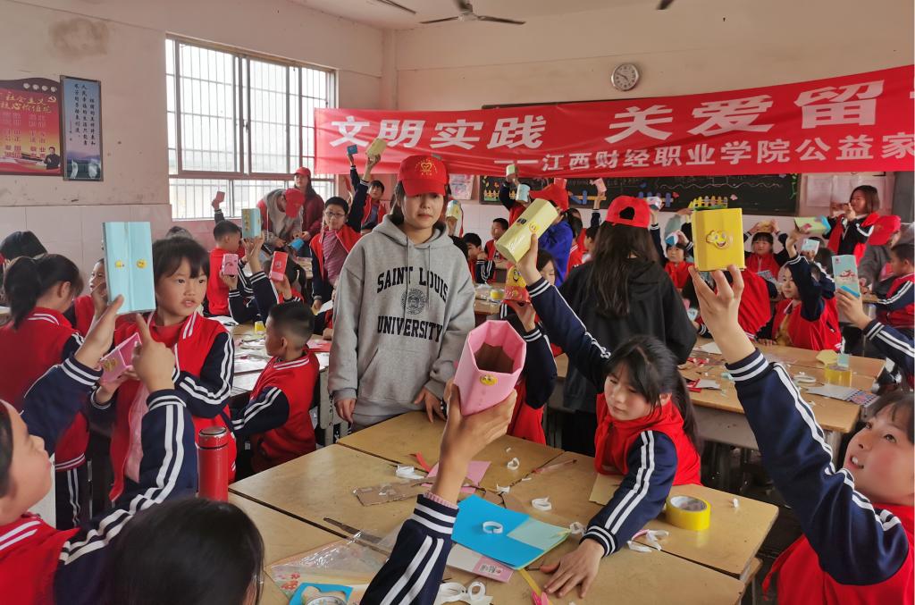 手工制作课上,志愿者们同孩子们一起用废弃快递纸箱制作精美手工——环保“小笔筒”。志愿者们大手帮小手,孩子们跟着志愿者的节奏有条不紊地进行制作。一个个小巧的笔筒在孩子们手中逐渐成型。当孩子们举起笔筒时,脸上的笑容透露出满满的成就感。