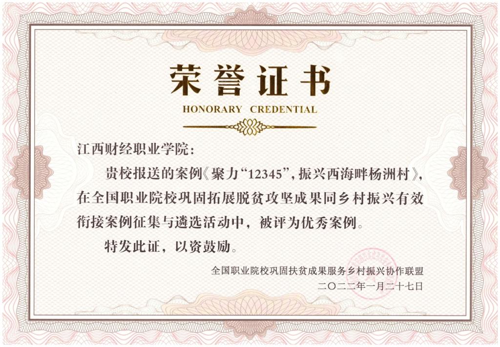 今年初,全国职业院校巩固扶贫成果服务乡村振兴协作联盟(以下简称“联盟”)开展了职业院校巩固拓展脱贫攻坚成果同乡村振兴有效衔接优秀案例征集与遴选活动,组织专家从问题的普遍性、模式举措的可推广性、实践成效、示范辐射等方面对全国各成员单位报送的众多案例进行评比遴选,最终评选出40个优秀案例。beat365报送的《聚力“12345”,振兴西海畔杨洲村》获此荣誉。