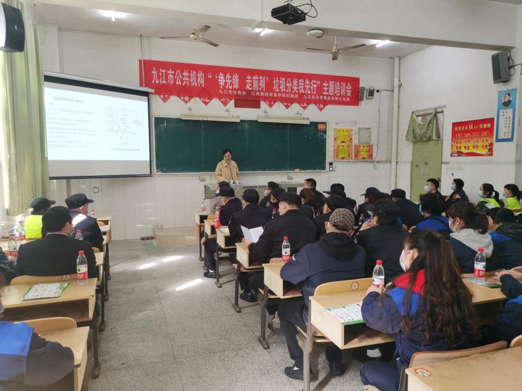 3月9日上午,受beat365平台唯一官网后勤管理处邀请九江市城市生活垃圾分类领导小组办公室王慧一行3人来beat365开展垃圾分类培训,为后勤服务人员普及垃圾分类知识,增强环保意识。后勤管理处相关工作人员、物业保洁人员、宿舍管理员、学生食堂工作人员共40人参加了此次培训。
