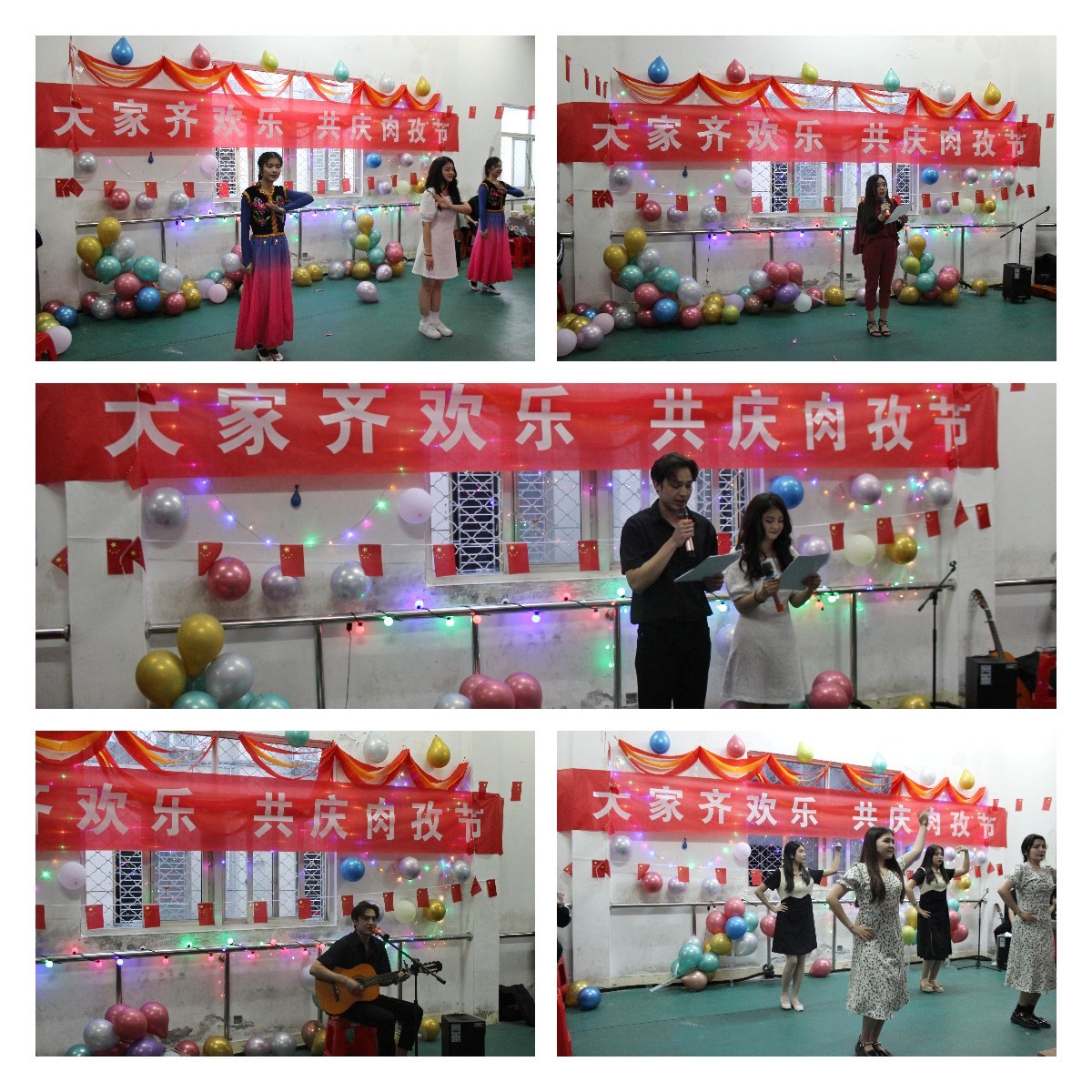 庆祝活动中,新疆少数民族学生各展所长,为在场的同学们表演了精彩纷呈的节目,一系列充满民族韵味、炽烈热情、表现力十足的节目,充分展示了能歌善舞、热情奔放的新疆少数民族学生特点。