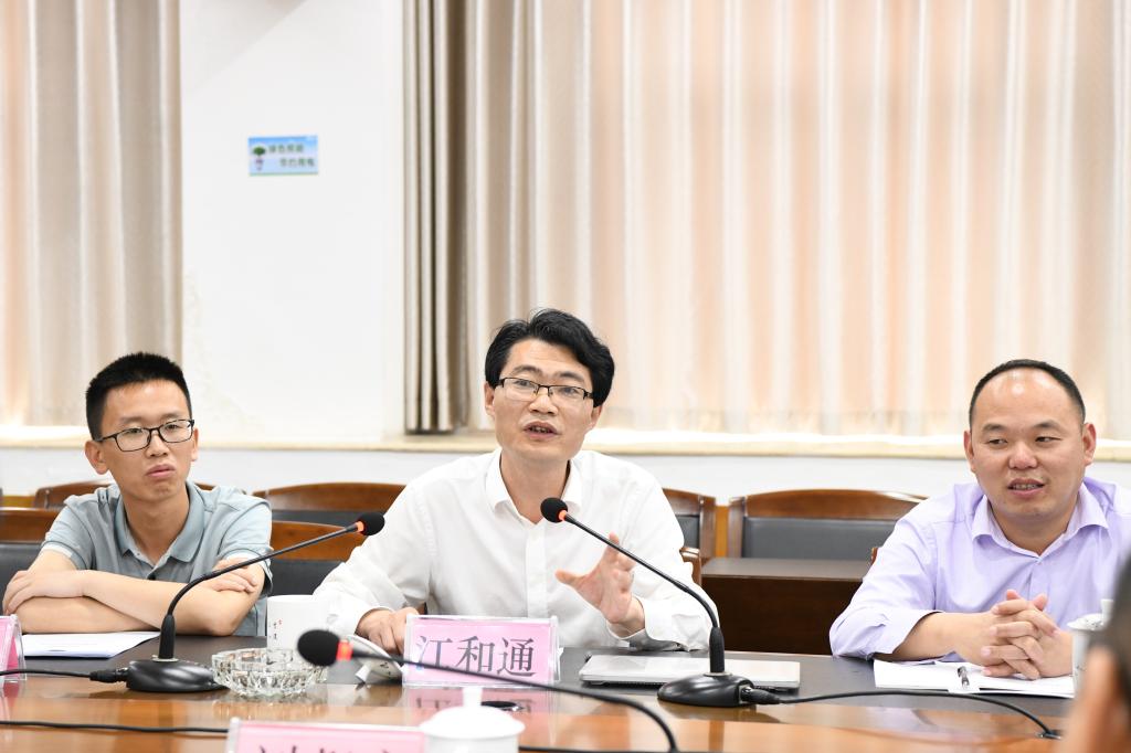 刘彪文校长对江和通一行的到来表示热烈欢迎,并简要介绍了学校办学和建设发展情况,希望能与都昌县在项目融合、人员交流、新技术共享等方面加强合作,打通学校与都昌县合作通道,发挥资源优势,为推动乡村振兴贡献学校力量。