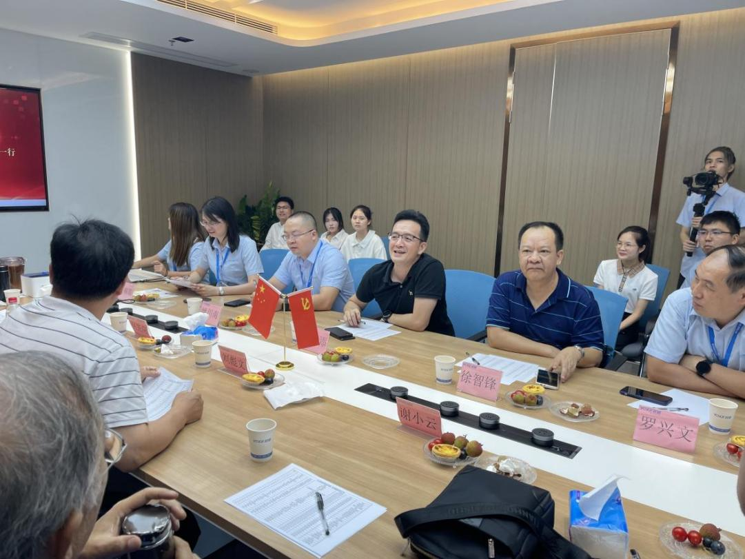 刘彪文书记一行来到越健集团深圳总部,受到了总经理朱定添和公司员工们的热情接待。学校一行参观了越健集团的智慧康养展示中心并看望了十余年来在越健集团工作的近四十名校友。