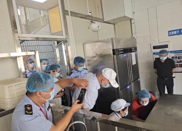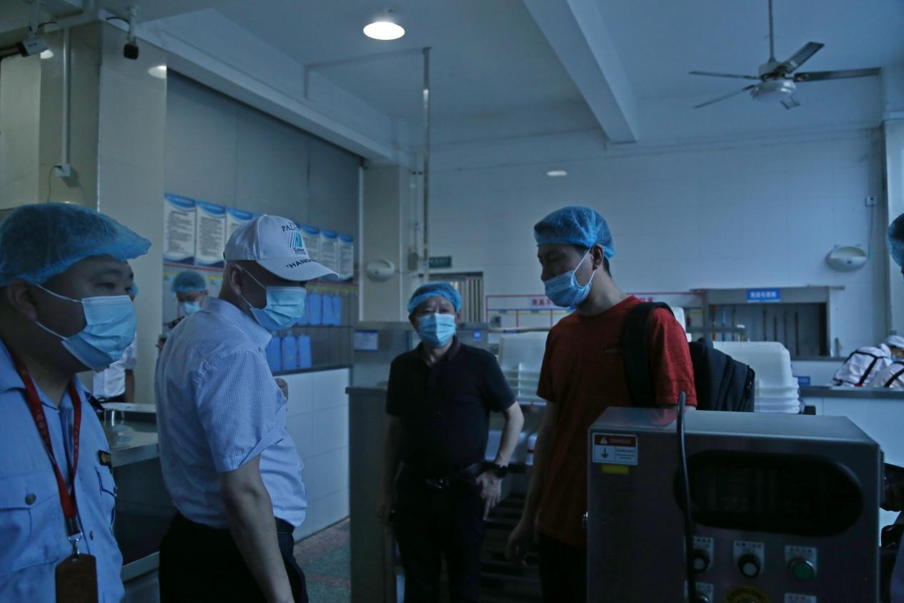 省市场监督管理局高度重视学校食品卫生安全管理规范工作。2022年6月21日,省市场监督管理局党组成员、副局长梁卫光率专家组一行来学校南区食堂实地督导检查食品卫生安全工作。校党委委员邱家明,学校后勤资产管理与服务处处长张东海代表学校热情接待了检查组并陪同检查了南区学生食堂。