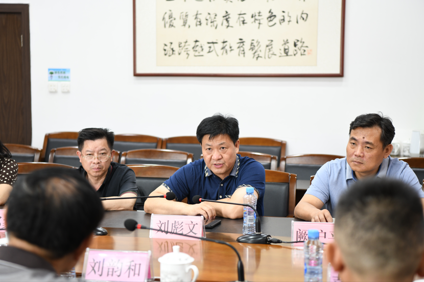 刘彪文代表学校对刘董一行的到来表示热烈欢迎,他介绍了学校的办学历史、新校区建设进度、校友会建设以及“三五十”战略规划等情况,并表示要强化校友会建设,加强校企合作,紧抓发展机遇,实现学校高质量发展。