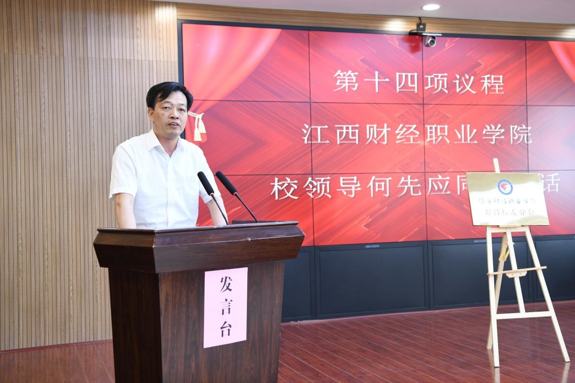 校党委副书记、常务副校长何先应发表讲话,向百忙之中莅临大会的各位校友表示热烈的欢迎,对付出辛苦劳动的筹备工作组表示衷心的感谢。他谈到,都昌校友分会作为首个省内校友分会,这将掀开beat365校友工作新的历史篇章。六十余年来,学校为国家和社会输送了大批的优秀人才,为了有效整合校友资源,进一步提升学校的影响力,给各届校友搭建一个与母校联系的平台,学校决定成立校友会。希望广大校友能够在“正、勤、敬、和”校训精神的引领下,秉承“真诚平等、团结互助、奋斗共享”的校友会宗旨,传承财院勤奋基因,在各自的岗位上踔厉奋发,笃行不怠。