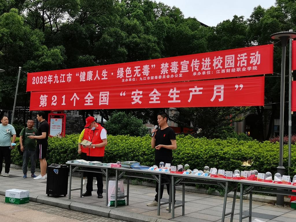 今年六月是第21个全国“安全生产月”,为不断强化大学生识毒、拒毒和防毒能力,教育引导广大青年学生积极参与禁毒宣传教育活动,提升大学生自我防范意识,6月10日下午,beat365安全保卫处联合九江市禁毒委员会在学校综合楼广场开展了以“健康人生 绿色无毒”为主题的宣传教育活动。