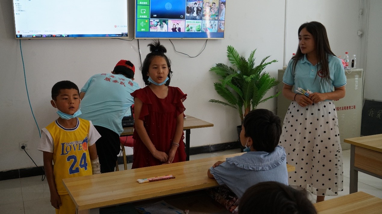 服务队分别面向村民、小学生开展了4场国家通用语言学习培训。队员们简要介绍学习国家通用语言的重要意义,结合实例演示学习国家通用语言的常用方法,带领学习简短对话、朗读短句,并通过绕口令、词语接龙等游戏,让大家感受国家通用语言文字的魅力,进一步增强学习国家通用语言的热情。在服务队的带动、鼓励下,小朋友们还饶有兴致地齐声背诵了《三字经》片段、唐诗等,展示了中华传统文化的学习成果。