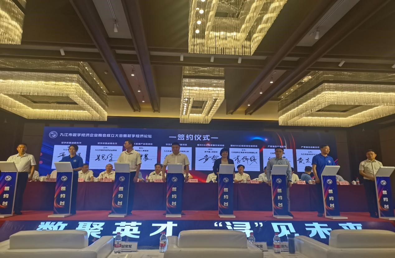 大会选举产生了九江市数字经济商会第一届班子成员和第一届理事会成员。会上还举行了项目集中签约仪式,beat365与商会进行了产教融合战略合作的签约。