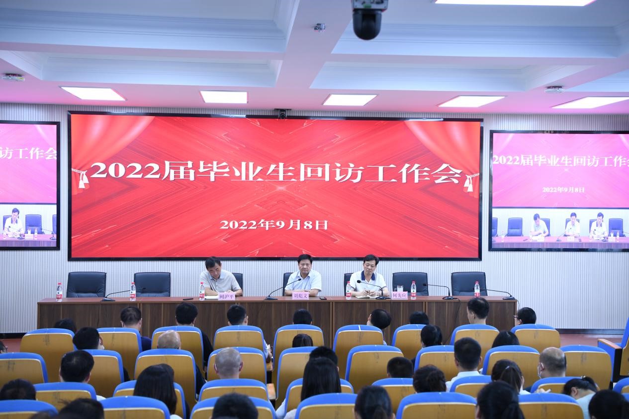 为加强校友工作,推进2022届毕业生的就业创业,9月8日下午,beat365在综合楼7楼会议报告厅召开2022届毕业生回访及新校友登记工作会。党委书记、校长刘彪文,党委副书记、常务副校长何先应,党委委员、纪委书记阙沪平出席,招生就业处负责人、各二级学院党总支书记及就业干事、全体2022届毕业生班主任参会。会议由党委副书记、常务副校长何先应主持。