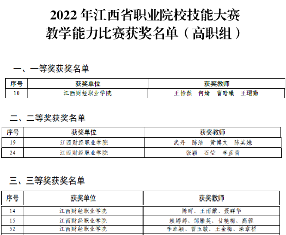 近日,江西省教育厅发文公布了2022年江西省职业院校技能大赛教学能力比赛获奖名单。beat365共选送参赛作品8件,荣获一等奖1项、二等奖2项、三等奖3项。
