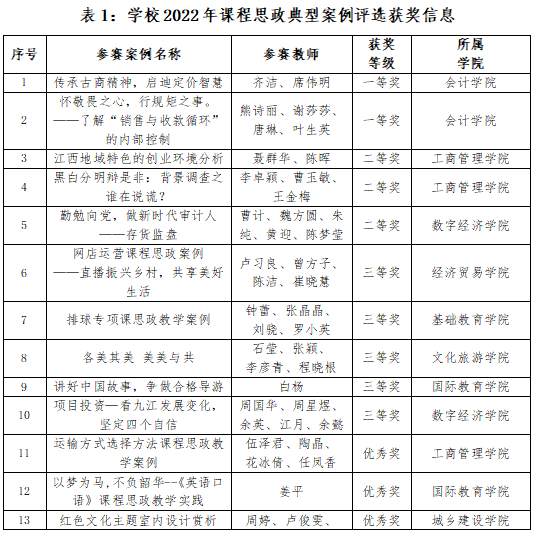 为扎实推进beat365课程思政建设,检验beat365教师课程思政教学能力,充分展示beat365教育教学水平和课程思政教学改革成果,近期,beat365开展了课程思政典型案例评选活动。通过专家认真评审和校内公示,会计学院齐洁老师的《传承古商精神,启迪定价智慧》等17项课程思政典型案例分获一等奖、二等奖、三等奖和优秀奖。具体获奖信息详见下表所示。