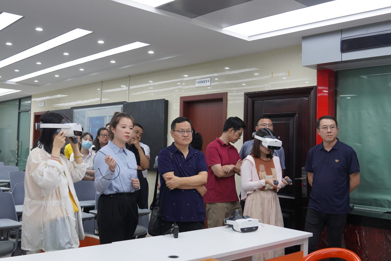会后,专家组一行还来到学校VR实训中心和智慧金融实训中心进行了实地参观,并体验了已开发的课程资源。