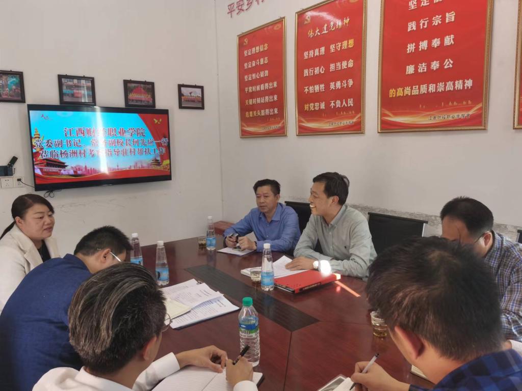 随后,何先应一行与杨洲村两委干部及驻村干部进行了座谈。座谈会上,杨洲村负责同志介绍了该村开展乡村振兴工作的情况,并对学校给予的帮扶表示感谢。驻村工作队第一书记黄亮汇报了上半年以来开展驻村帮扶工作有关情况。