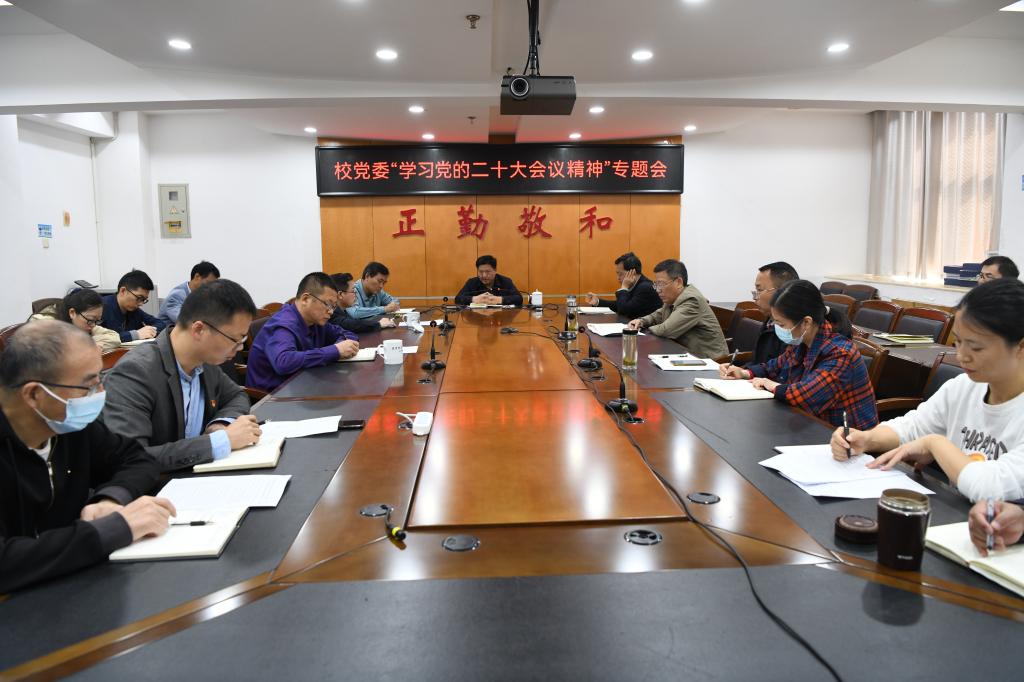 为学习宣传好党的二十大精神,学校党委成立了党的二十大精神专题学习班。10月20日上午,党委开展了第一次专题学习,集中学习了习近平总书记在党的二十大开幕会上所作《高举中国特色社会主义伟大旗帜 为全面建设社会主义现代化国家而团结奋斗》重要报告,部署学校学习宣传党的二十大精神有关工作。校领导班子成员、党委会列席人员、各党总支书记参加学习。校党委书记、校长刘彪文主持会议并讲话。