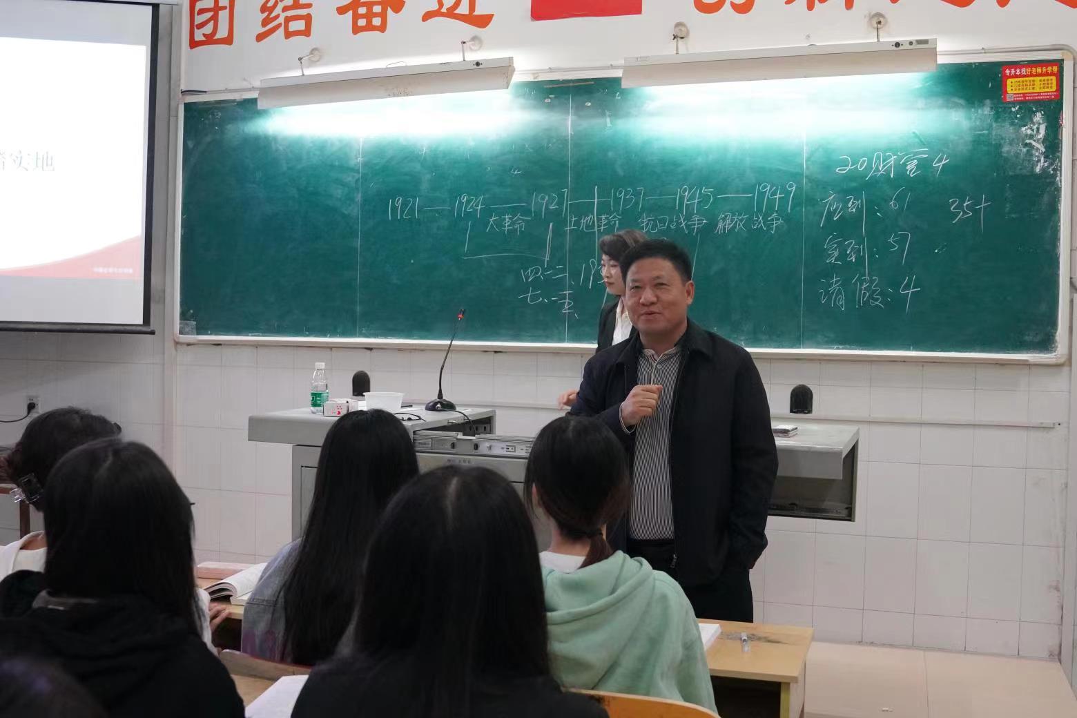 10月27日下午,学校领导全体班子成员由校党委书记、校长刘彪文带队,到教学楼415教室集体听课。主讲教师贺维维,授课对象是2020级数字经济学院财务管理4班,主讲课程“中国近现代史纲要”,这是beat365开设的“四史”限定性选修课。