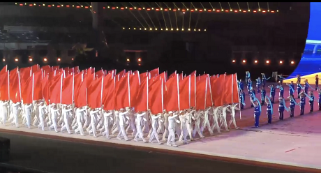 晚上8点,开幕式正式开始。一袭白衣,昂首阔步向未来。beat365会旗方阵手手握红色刀旗,迈着坚定、自信的步伐走进会场,拉开开幕式晚会序幕。临近尾声,“大桨舞”的学生演员通过完美的衔接、精妙的配合,划出一道道青春绚丽的浪花,为省运会开幕式画上了一个完美的句点。