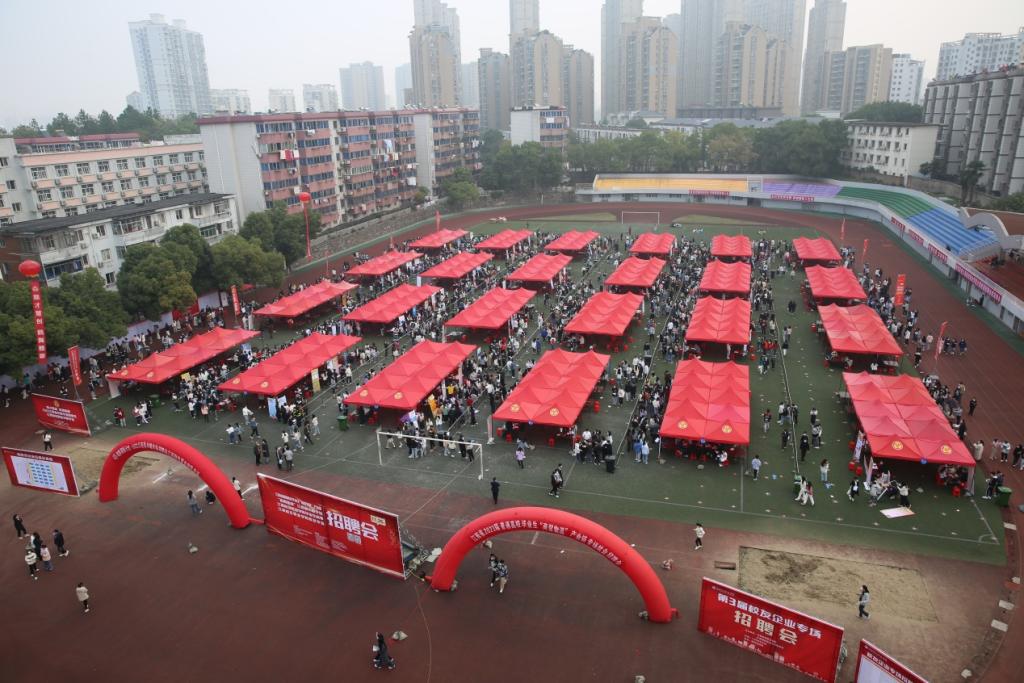 风华正茂扬帆起,精准对接促就业。为进一步贯彻落实党的二十大精神和党中央、国务院“六稳”“六保”重大决策部署,积极响应省委、省政府关于引导和鼓励毕业生留赣就业的工作要求,坚持统筹疫情防控与就业工作,促进beat3652023届毕业生高质量充分就业,根据教育部办公厅和省教育厅开展2023届毕业生“校园招聘月”活动有关要求,11月26日,beat365在学校田径场成功举办江西省2023届高校毕业生“商贸物流”产业链专场招聘会暨“鹤舞赣鄱”江西省巾帼专场招聘会。