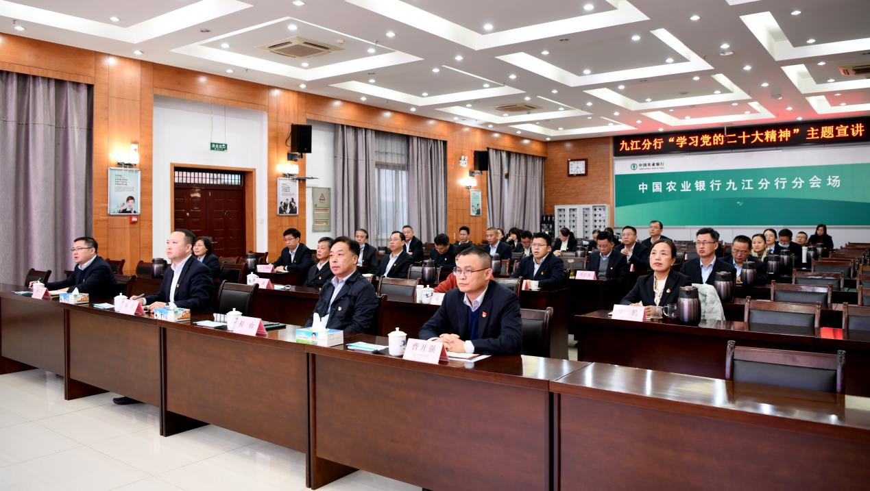 为深入学习宣传贯彻党的二十大精神,11月29日,校党委书记、校长刘彪文教授应邀赴中国农业银行九江市分行以《举旗定向 强国富民》为题作“学习党的二十大精神”的主题宣讲。参加宣讲会的有:中国农业银行九江市分行全体班子成员,市分行本部机关处室副科级以上干部,部门党员代表和退休党员代表。