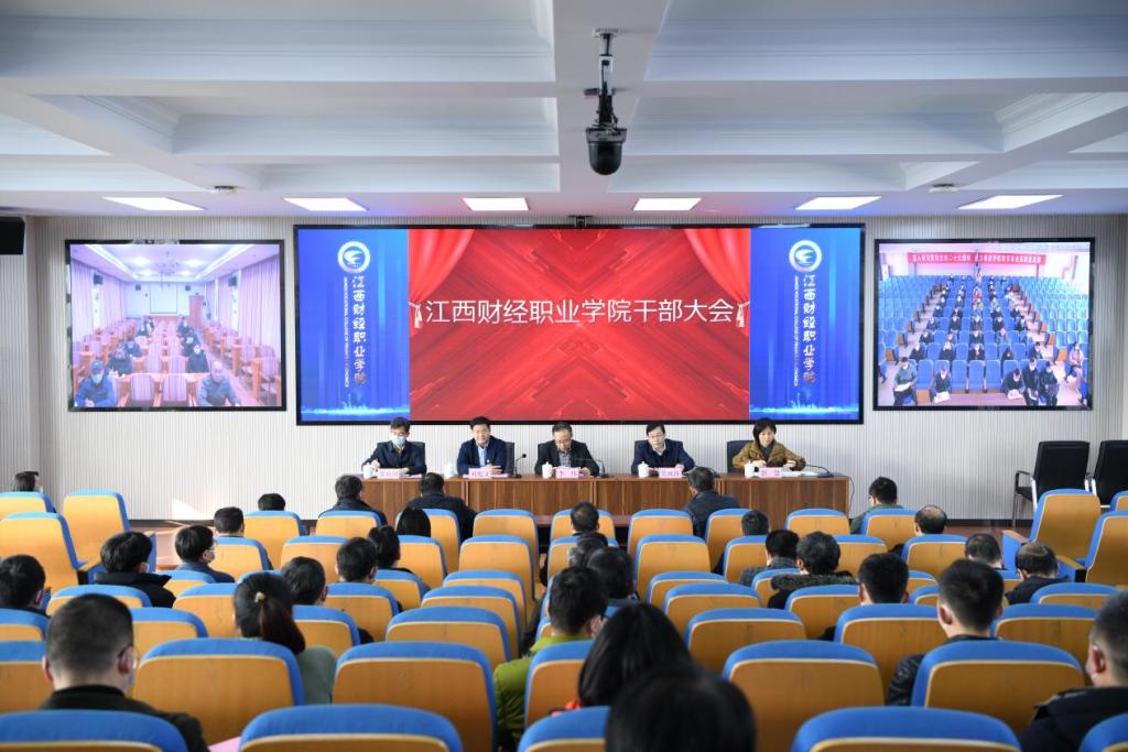 12月9日上午,学校在综合楼7楼报告厅召开了全体干部大会,宣布省委、省政府关于彭慧同志任职的决定。省财政厅党组成员、副厅长李伟主持会议,省委组织部干部四处二级调研员吴成涛、省财政厅人教处副处长邹有国和学校领导班子成员出席,学校全体中层干部、正高以上专业技术人员参加,南昌校区视频参会。