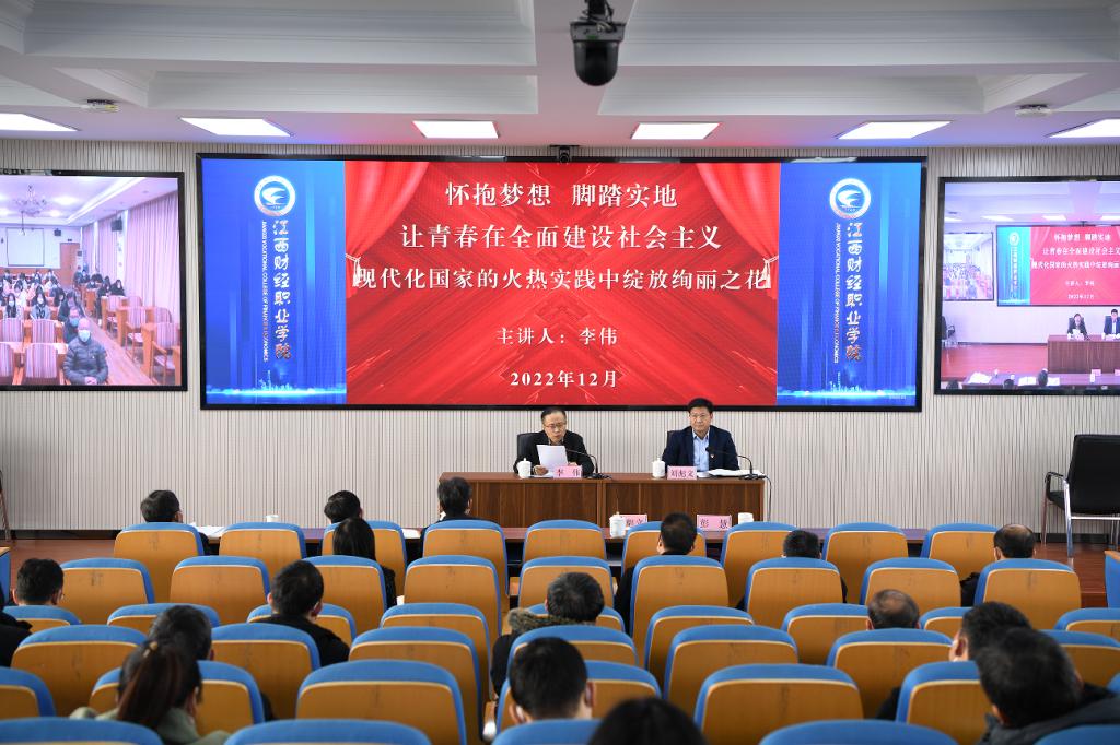 12月9日,省财政厅党组成员、副厅长李伟来beat365宣讲党的二十大精神,为师生讲授思政课。宣讲会在综合楼七楼学术报告厅举行,校党委书记、校长刘彪文主持,校领导班子成员、中层干部、师生代表一起聆听了宣讲,南昌校区师生通过视频参加学习。