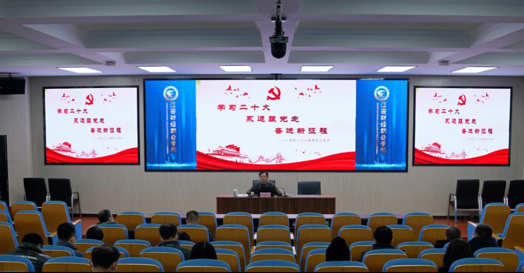 为深入学习宣传贯彻党的二十大精神,12月13日下午,校党委委员、办公室主任邱家明在七楼报告厅为分管部门、挂点学院、所属党支部师生员工及党员代表宣讲党的二十大精神,讲授思政课。