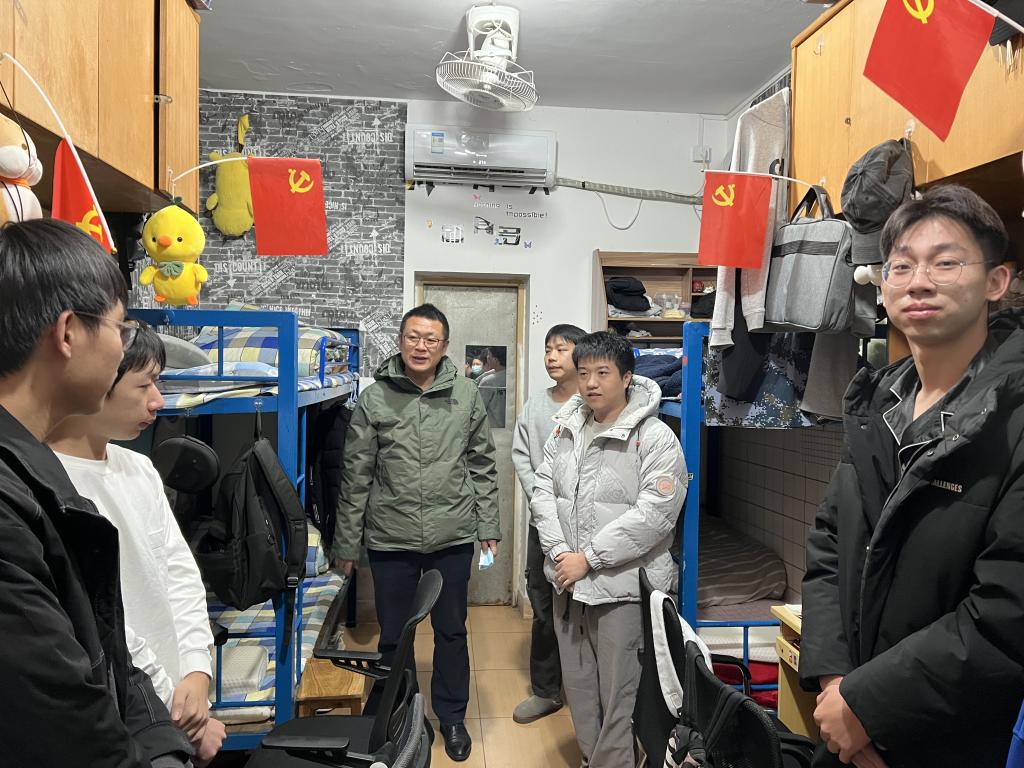 走访期间,校党委委员刘锋对毕业班同学们在寝室卫生的保持上给与了高度赞扬,刘锋委员指出:良好的寝室环境反映的是同学们良好的自我约束、自我管理能力以及自身综合素质,希望同学们能把这种严谨、自觉的好习惯带到未来的工作当中,秉承“正 勤 敬 和”的校训精神,在人生的新阶段继续勇毅前行,为实现第二个百年奋斗目标、实现中华民族伟大复兴的中国梦踔厉奋斗,让青春在新征程中开出绚烂之花。
