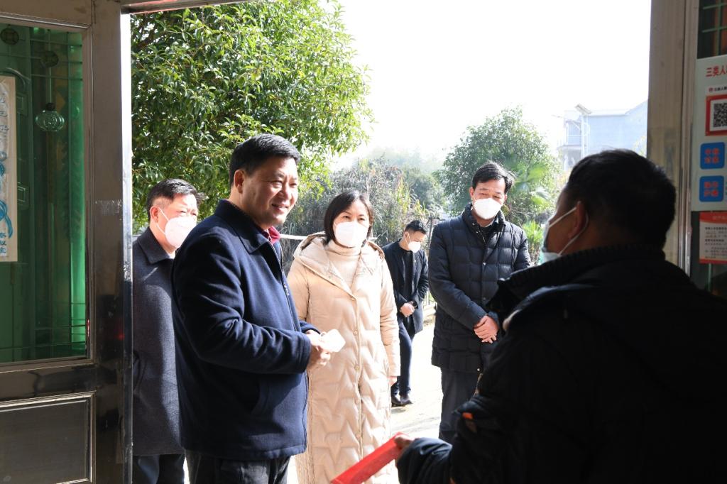 为认真落实习近平新时代中国特色社会主义思想和国家乡村振兴战略,扎实推进巩固脱贫攻坚成果与乡村振兴有效衔接工作,1月4日,校党委书记刘彪文、校长彭慧带队深入beat365定点帮扶村武宁县杨洲乡杨洲村实地调研,并开展春节前夕走访慰问。校党委副书记、常务副校长何先应,校党委委员邱家明,以及党政办公室、工会、文化旅游学院有关负责同志,杨洲村驻村工作队和村委干部陪同走访调研。