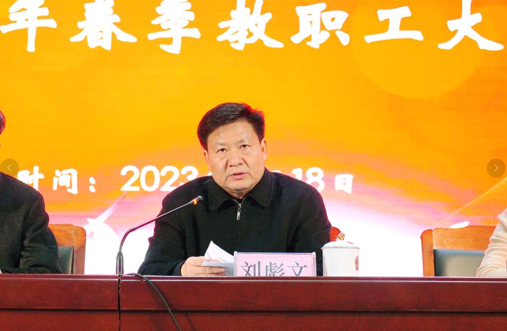 2月18日,在春季教职工大会上,校党委书记刘彪文为全体教职员工宣讲党的二十大精神并作学习分享。校领导班子全体成员、全校教职员工参加学习,南昌校区通过视频参会。