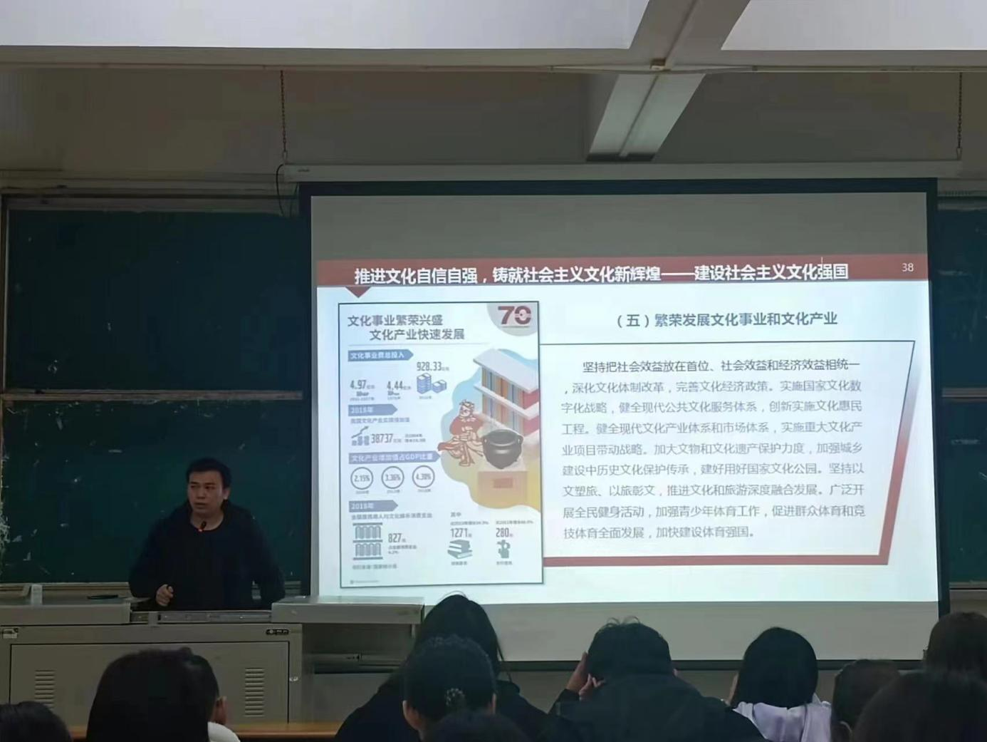 九江市青年讲师团成员、马克思主义学院团总支书记康卫平以《推进文化自信自强,铸就社会主义文化新辉煌——建设社会主义文化强国》为主题,从“为什么要建设社会主义文化强国”“建设什么样的文化”“怎样建设社会主义文化强国”三个方面,紧扣习近平总书记的重要讲话精神,结合时代案例,阐述了党的二十大报告的主题,有助于进一步增强同学们的文化自信。