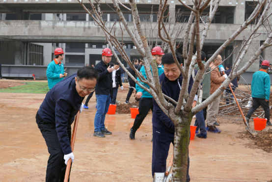 大家早早地来到八里湖新校区,在规划好的一片空地上紧张地劳动起来。大家拿起劳动工具埋头植树,有的挥锹挖坑、有的铲土填土、有的浇水,大家配合默契,经过辛勤的劳动,多棵樱花树“安家落户”。虽然有些劳累,但同志们都兴高采烈,仿佛已经看见我们的新校园绿树成荫、繁花似锦。