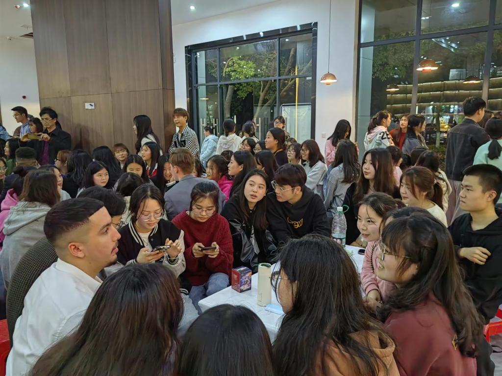 活动最后是英语跨文化交流,同学们与外国友人分组围坐,围绕不同的话题以各自所处的文化为出发点,用英语畅谈文化生活中的见闻趣事,每一位外国友人都是充满耐心、富有激情地与大家交流,同学们在了解西方文化故事的同时也展示了生动有趣的中国故事,有效地传播了中华优秀传统文化。