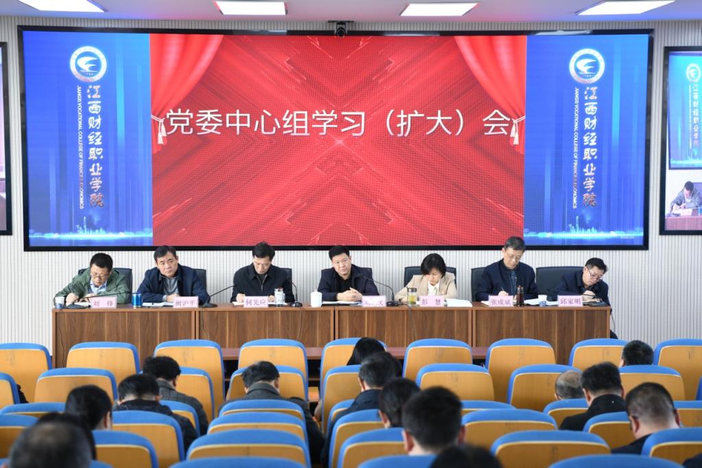 3月10日,学校在综合楼七楼报告厅召开党委中心组学习(扩大)会,就贯彻落实党的二十大精神和全国两会精神开展专题学习。党委书记刘彪文主持会议,校领导班子成员、各部门负责人参加会议,南昌校区视频参会。