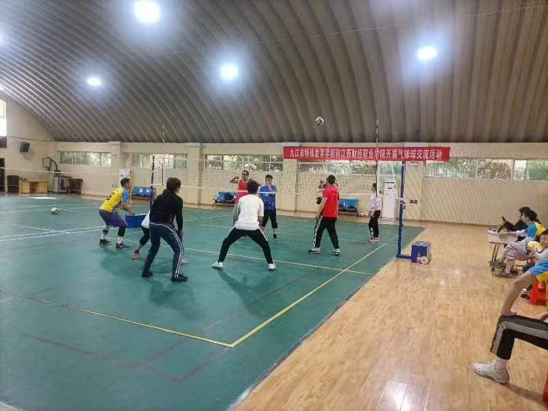 在公益课与气排球交流赛结束之后,紧接着,校关工委为九江市特殊教育学校的学生进行了爱心捐赠,将学生们急需的学习和健身活动用品送到了他们手中。