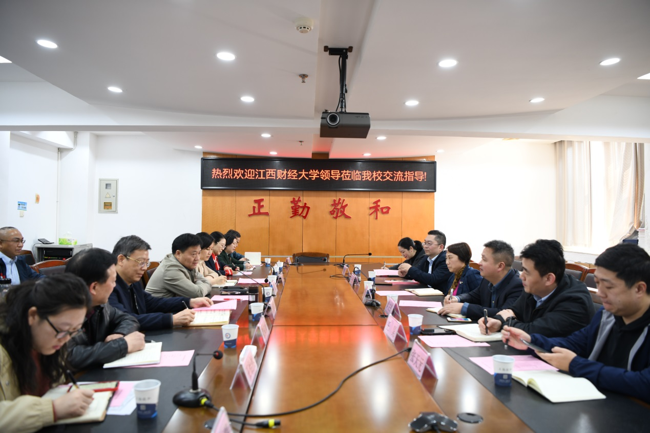 3月7日,江西财经大学会计学院党委书记黄文德、金融学院党委书记王琪和工商管理学院党委书记贺三宝等一行6人来beat365开展联培调研交流工作。beat365党委书记刘彪文、党委副书记、校长彭慧以及党委委员、副校长张成斌在综合楼1201会议室热情接待了财大一行,招生就业处、本科部、会计学院、金融学院、和工商管理学院等部门主要负责人以及本科班主任、辅导员参加了本次调研交流座谈会。