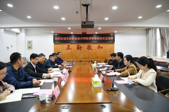4月4日,吉安职业技术学院党委委员、副院长李家林和党委委员、吉安市高级技工学校校长陈霄虹等一行5人来beat365调研交流。beat365党委委员、副校长张成斌热情接待了李家林一行,双方人员在综合楼1201会议室举行座谈交流,beat365组织部、人事处、教务处等相关部门负责人和有关同志参加了座谈会。