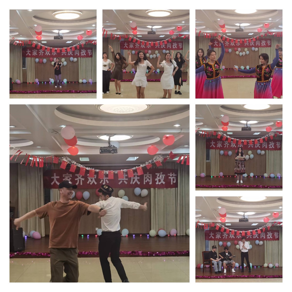 联欢会上,同学们互相道贺,彼此祝福,共进晚餐,一起载歌载舞。同学们精彩纷呈的表演把民族风情展现得淋漓尽致,充分展现了新疆少数民族的地域文化,带领在场师生领略了新疆文化的魅力和风采,整场联欢晚会洋溢着欢乐的气氛。