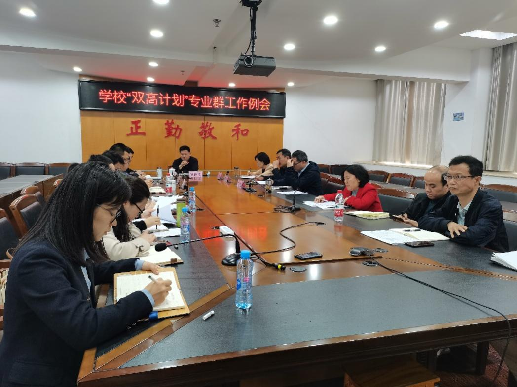 会上,校领导听取了各专业群、计划财务处和质量管理办公室负责人分别就专业群建设、“双高”预算和“双高”项目推进等工作的汇报。