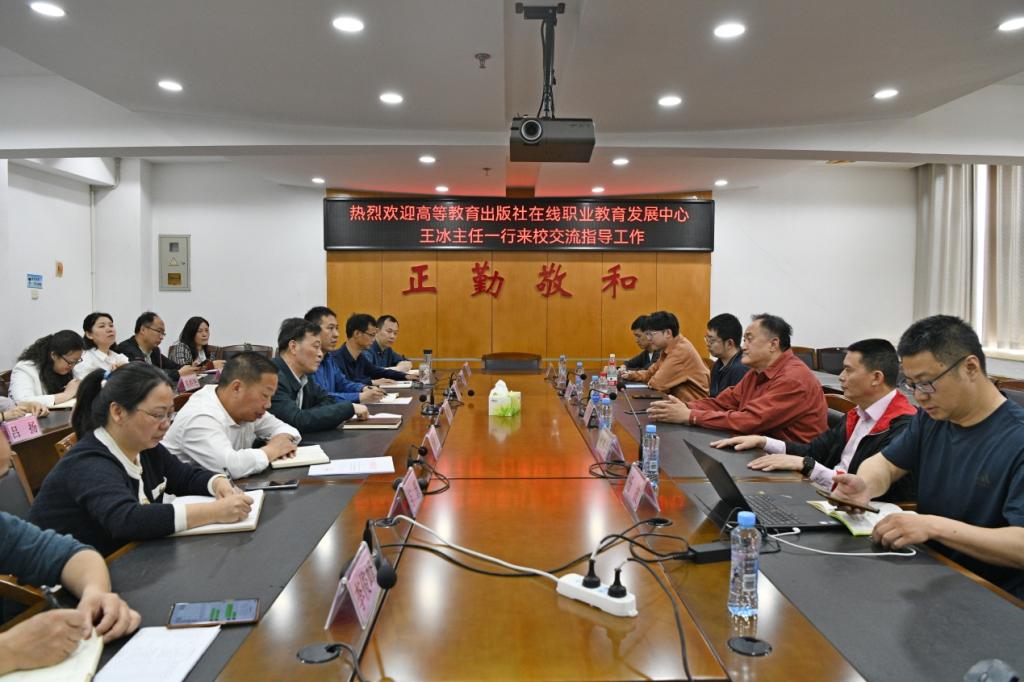 5月9日上午,高等教育出版社在线职业教育发展中心主任王冰、高等教育出版社江西省职业教育教学服务中心主任敖林生、高等教育出版社高级编辑李学锋、高等教育出版社在线职业教育发展中心华东区主任杨波、江西立创高教文化有限公司总经理敖泽宇一行到beat365调研交流。校党委书记刘彪文在综合楼1202会议室热情接待了王冰主任一行,校党委副书记、常务副校长何先应,教务处、各二级学院负责同志参加交流座谈会。
