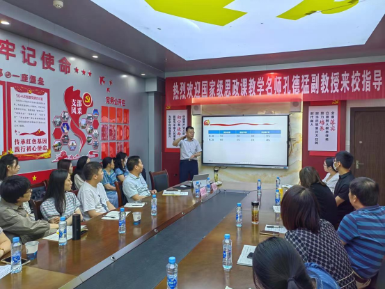 为推动学习贯彻习近平新时代中国特色社会主义思想主题教育走深走实,提升思政课教师教学能力,建设思政“金课”,6月3日,马克思主义学院邀请国家级思政课教学名师、第二届全国高校思政课教学展示“特等奖”获得者、上海交通大学孔德猛副教授在综合楼803会议室做《教学理念及教学设计——以“概论”课“邓小平理论和中国特色社会主义开创”为例》的教学指导。活动由朱欣成名师工作室承办,马克思主义学院朱欣成院长主持,来自beat365和九江职业技术学院、九江职业大学的部分思政课教师参加。